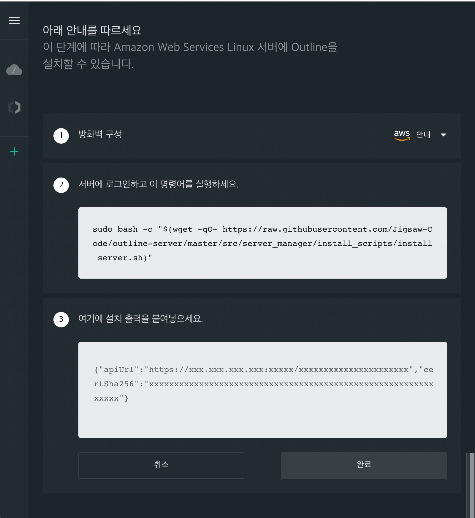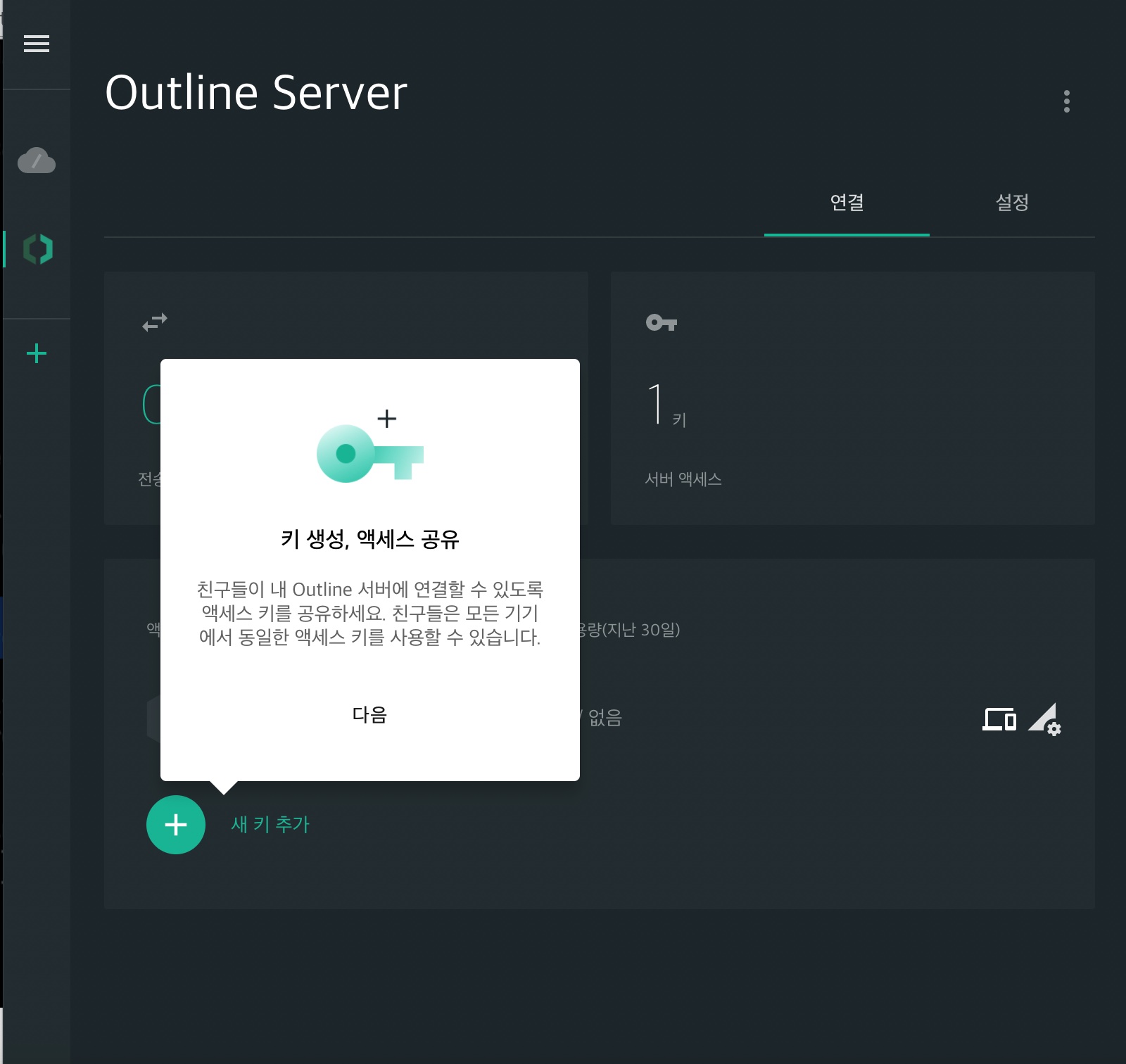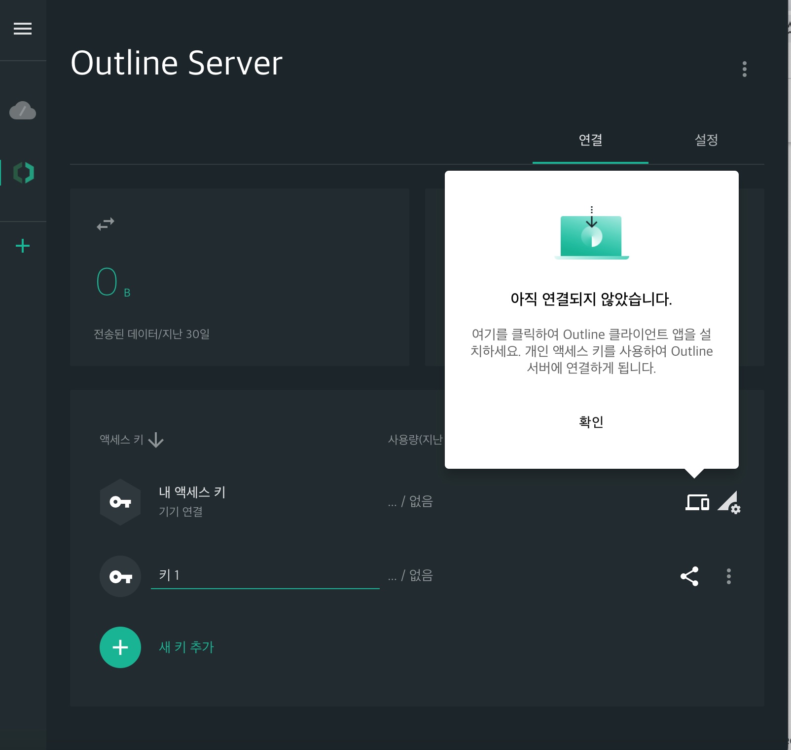 설치 후 outline 매니저에 등록된 키를 앱에 등록합니다.